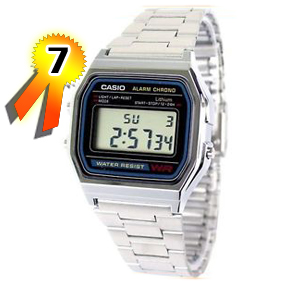 Orologio da polso Casio unisex, water resistant; Cinturino in acciaio INOX; Cronografo 1/100 sec; Allarme giornaliero; Movimento al quarzo; Display digitale; Batteria 7anni.