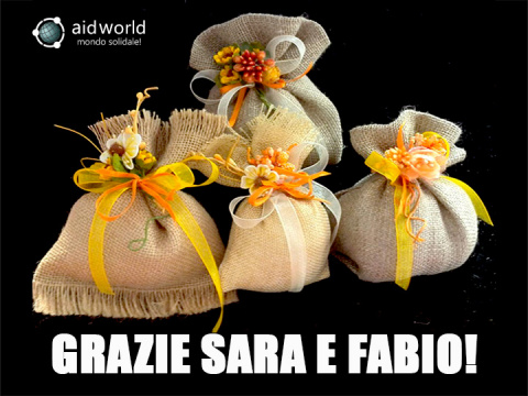 Grazie di cuore a Sara e Fabio, che in occasione del loro matrimonio hanno deciso di donare a tutti gli ospiti le bomboniere solidali di Aidworld!