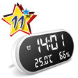 Sveglia elettrica con tre allarmi, orologio Led, doppia porta USB per telefoni cellulari e caricabatteria, indica temperatura e umidità, illuminazione auto-regolabile in 3 modalità, batteria da 3V (inclusa). Dimensioni 18x8x5,7cm.