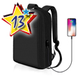 Zaino per computer portatile con porta USB e cavo di ricarica integrato. Realizzato in nylon resistente all'usura e antigraffio con cerniere in metallo lisce. Leggero e impermeabile. Dimensioni 13x43x32cm, capacità 18L. Colore nero.